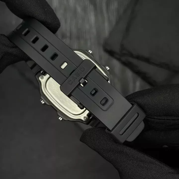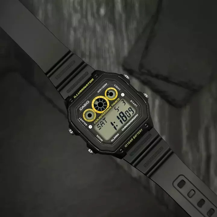 Представляємо вам стильний спортивний годинник Casio AE-1300WH-1A, створений для активних чоловіків. Цей надійний аксесуар виготовлено з міцного полімеру, що забезпечує йому відмінну стійкість та легкість - всього 65 г. Чорний квадратний корпус розміром 45 х 42 мм, обладнаний електронним циферблатом, доповнений яскравою електролюминесцентною підсвіткою, що робить його зручним для використання в темряві.