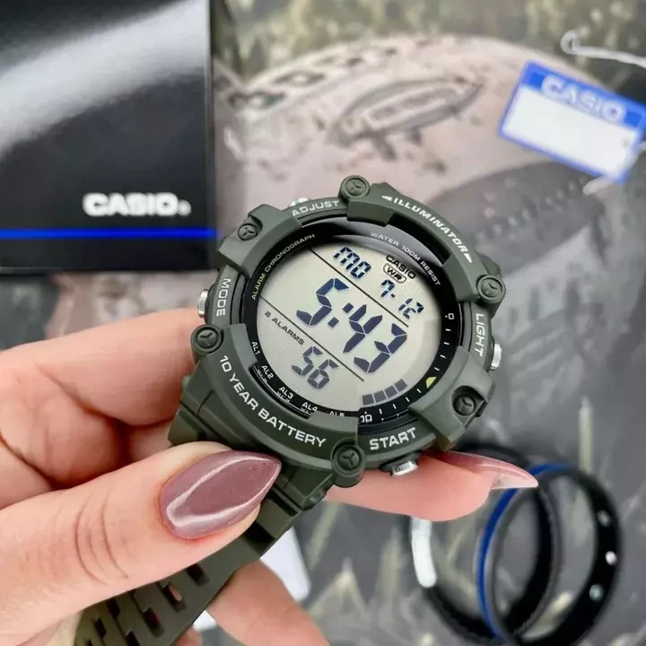 Пропонуємо вам спортивний годинник Casio AE-1500WHX-3A це вибір для активних чоловіків. Ці стильні годинники виконані з міцного полімеру темно-зеленого кольору, що надає їм сучасного вигляду. Водонепроникні до 100 м, вони стануть вашим надійним супутником у будь-яких умовах, будь то спортивні заняття чи повсякденне використання.