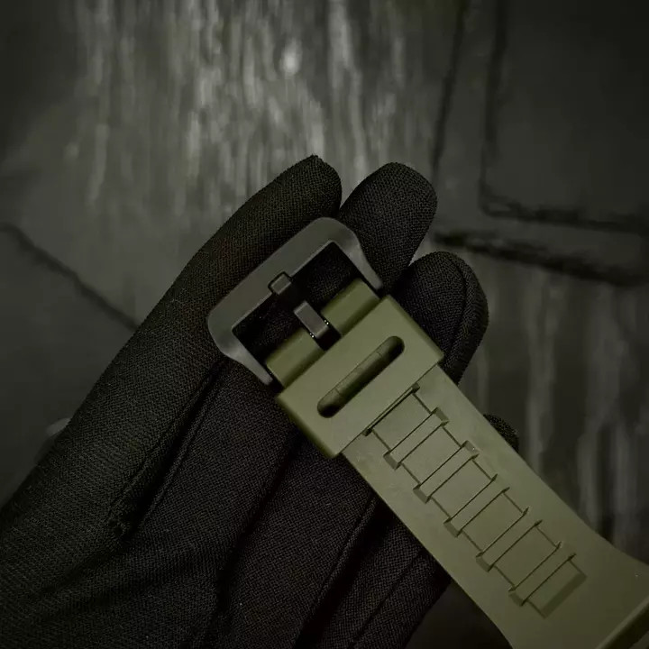 Корпус годинника виготовлений з міцного полімеру, а ремінець має темно-зелений відтінок, що додає йому оригінальності й дозволяє комфортно носити його протягом усього дня. Стрілочно-електронний циферблат з арабськими цифрами забезпечує легкість читання та точність вимірювання часу.