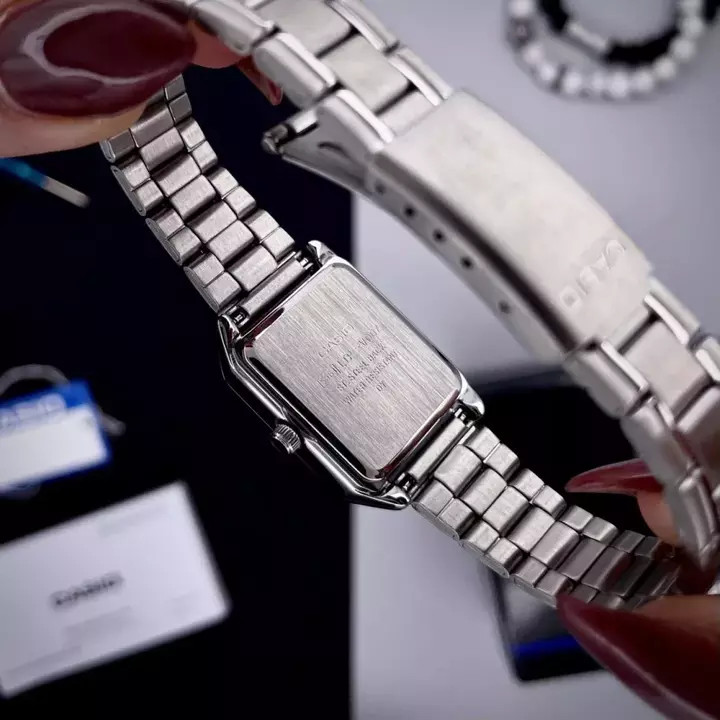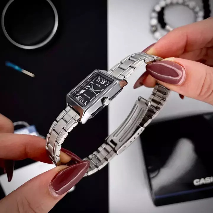 Представляємо вам класичний жіночий годинник Casio LTP-V007D-1B — елегантний аксесуар, який поєднує в собі вишуканість та функціональність. Цей стильний годинник має квадратний корпус з латуні сріблястого кольору і металевий браслет, що забезпечує комфорт на зап’ясті. Мінеральне скло захищає циферблат, на якому чітко видніються римські цифри.