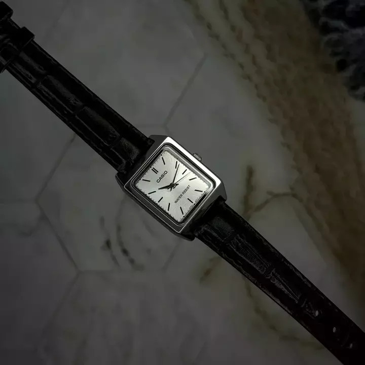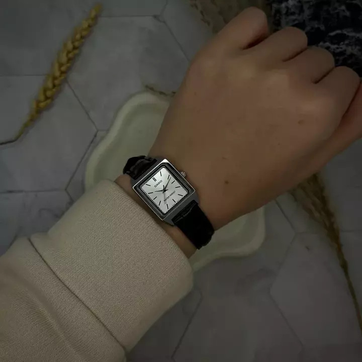 Представляємо вам жіночі годинники Casio LTP-V007L-7E1 — стильний аксесуар для сучасної жінки. Цей класичний кварцовий годинник українського виробника справляє враження витонченості завдяки своєму квадратному сріблястому корпусу, виготовленому зі сталі, та елегантному чорному шкіряному ремінцю.