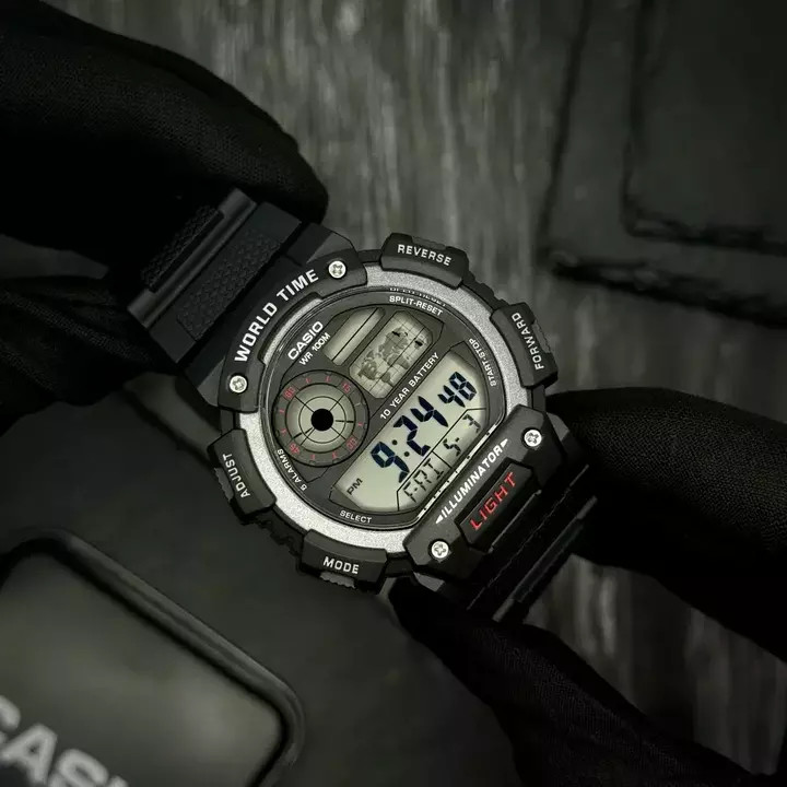 Представляємо вам стильний та функціональний годинник Casio AE-1400WH-1A, який поєднує в собі спортивний дизайн та високу надійність. Цей чоловічий годинник виготовлений з легкого і міцного полімеру, що забезпечує комфорт при носінні. Він має водонепроникність до 100 м, що дозволяє використовувати його під час водних видів спорту без жодних переживань.