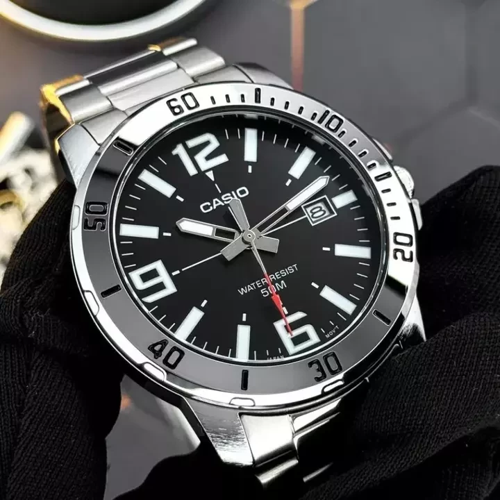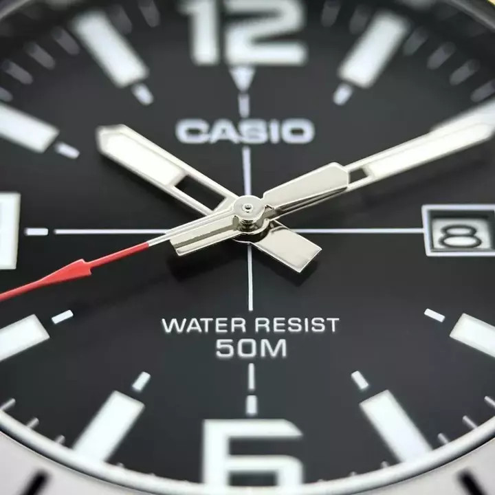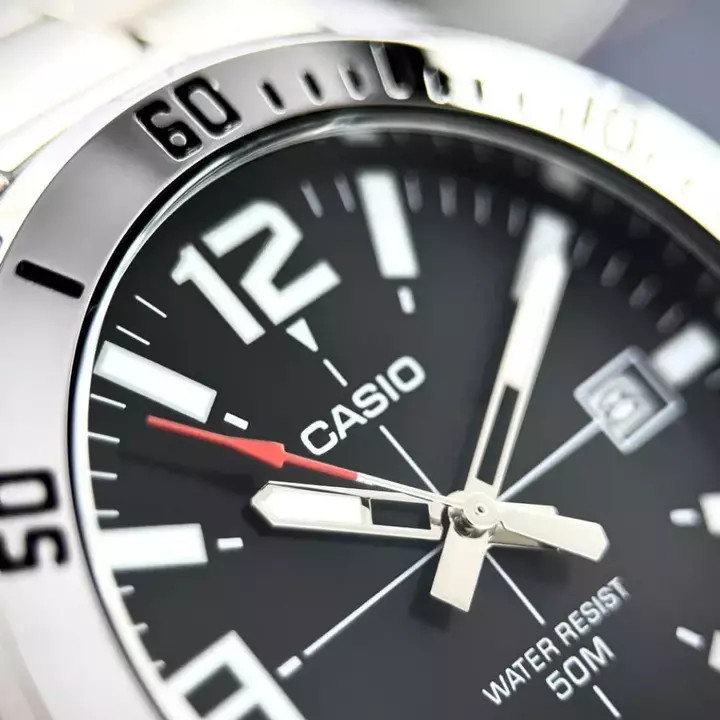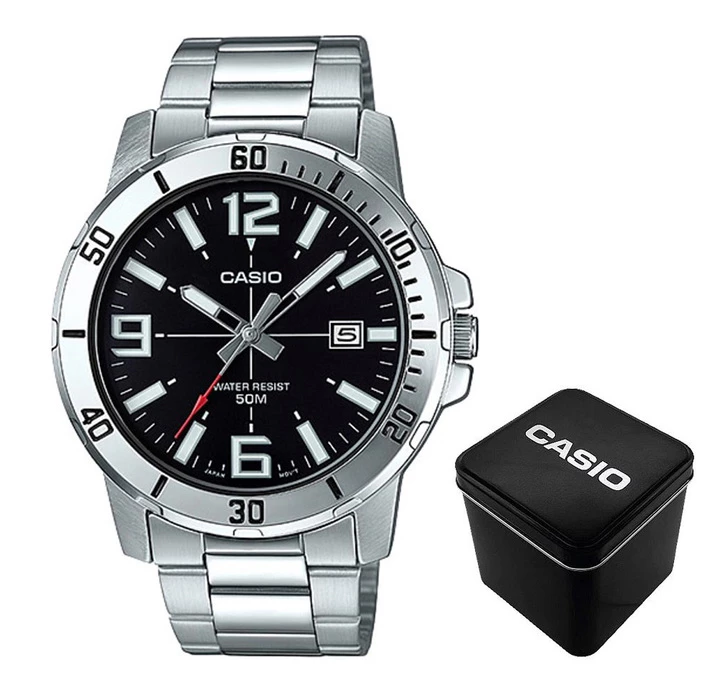 З водонепроникністю до 30 метрів та кварцовим механізмом, Casio MTP-VD01D-1B є надійним компаньйоном для повсякденного використання. Скло з мінералу забезпечує стійкість до подряпин, а люмінесцентна підсвітка дозволяє зчитувати час в умовах недостатнього освітлення.
