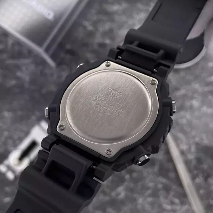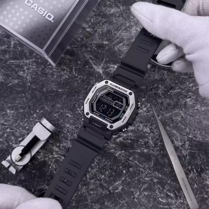 Casio MWD-110H-8B працює на надійному кварцовому механізмі і має функцію електролюмінесцентного підсвічування, що дозволяє без проблем зчитувати час у темряві. Часовий індикатор показує години, хвилини та секунди, а довжина ремінця складає 26 мм, що підходить для більшості зап'ясть.